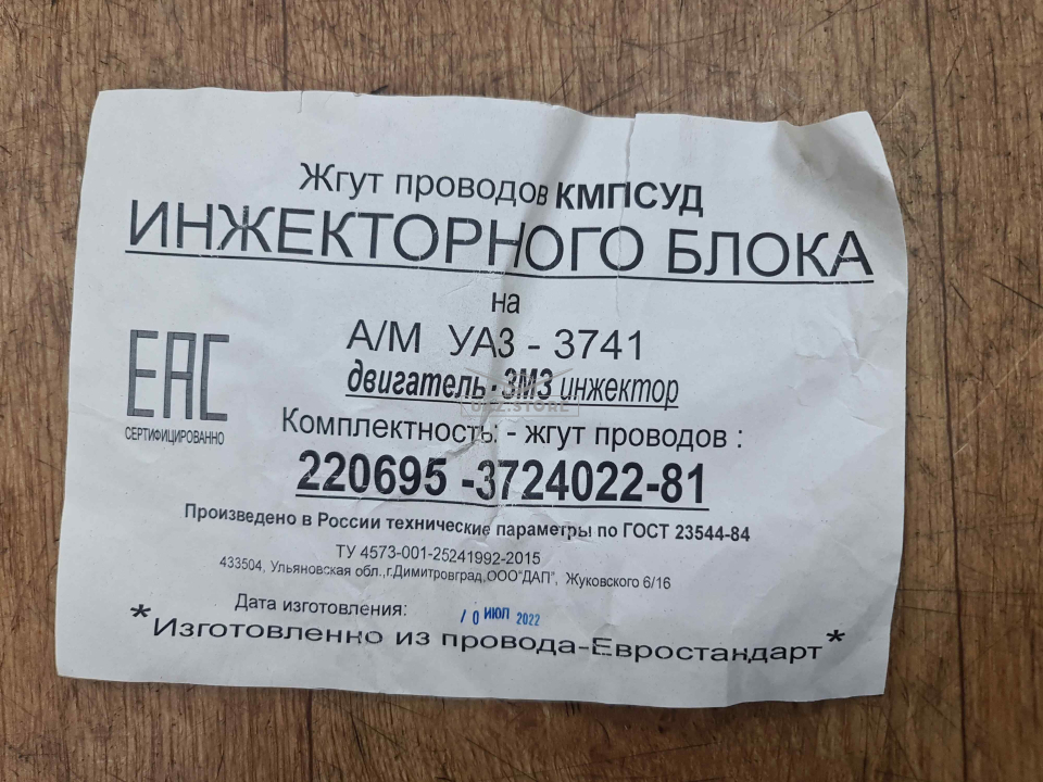 Жгут проводов КМПСУД 452 (для двигателя УЗМ-4213, Евро-2)