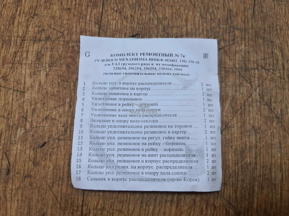 Ремкомплект гидроусилителя руля РТИ (Борисов) Полный - для механизмов (136-ых для 452) с артикулом 7к — это высококачественная деталь, предназначенная для установки на автомобили УАЗ. Она выполнена из прочных материалов, что обеспечивает долгосрочную эксплуатацию и безопасность. Используется для восстановления гидроусилителя руля, обеспечивая его работоспособность.