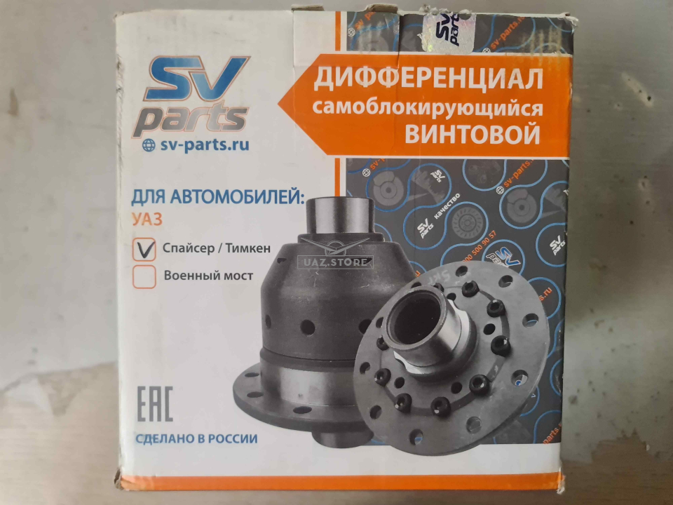 Червячный самоблокирующийся дифференциал — это модернизированная версия штатного дифференциала для УАЗ с мостами типа «простой» или «Спайсер». Он улучшает сцепление ведущих колёс с дорогой за счёт автоматического перераспределения крутящего момента при пробуксовке одного из колёс. Не требует внешнего управления или подключения.